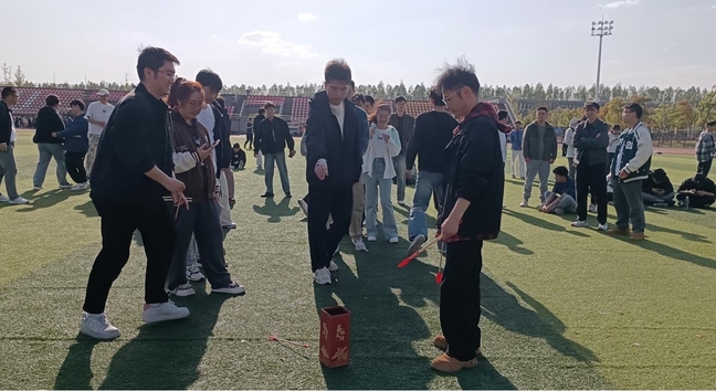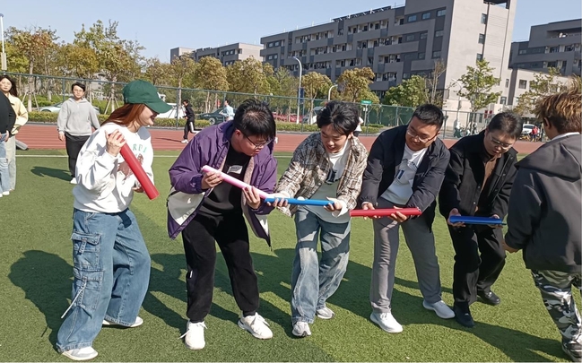 本次素质拓展活动设置珠行万里、环游世界、沙包投掷、投壶、拔河等特色活动,沙包投掷和投壶现场,同学们全神贯注,以精准的技巧展现风采;珠行万里中,团队成员默契配合,用接力传递的方式诠释协作智慧;环游世界项目则激发集体智慧,大家群策群力,在限时挑战中突破自我。活动中,导师们与员工并肩作战,共同制定策略、攻克难关;最后以专业为单位的拔河比赛将活动推向高潮,各专业参赛队伍士气高涨,随着裁判员的一声令下,双方奋力拼搏,全场师生齐心协力、鼓劲加油,场面气氛热烈。