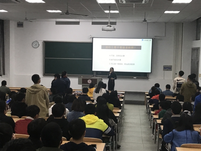 刘学英老师以小游戏的方式开场,详细阐述了一份好的简历在应聘不同岗位的时候应该包含哪些内容,什么内容是加分项,什么内容是减分项,什么样的内容不加不减。解析了如何打造个人职业品牌简历,把握好简历的金标准,在内容上要有针对性,不要一份简历打天下;在措辞上要具体、简洁、条理;在模板上要商务、易于阅读,让HR能快速读懂你的简历,准确判断你的能力、性格和形象等内容。最后,刘老师讲述了找实习是一项系统工程,同学们需要做好充足的准备和规划,打开职业发展的大门。