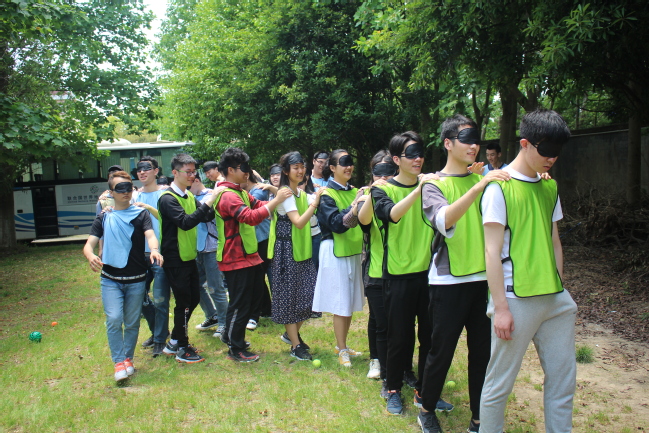 此次拓展训练旨在进一步强化同学们的团队合作意识,全体同学分成三组,在教练的精心指导下,通过团队成员们的团结协作,先后完成了 “群龙取水”、“贪吃蛇”、“超音速”、“印第安猎手”、“呼吸的力量”和“待人接物”等一系列以激发个人潜能、熔炼团队智慧为宗旨的室外素质拓展训练项目。