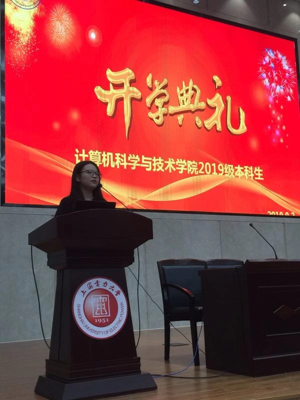 接下来由2018届团委员工会副书记计算机科学与技术专业2016055创新班的孙卉佶学姐作为老生代表发言。她激励同学们要尽早做好大学四年的规划,以梦为马,不负韶华,通过不懈的努力,成为最好的自己。
