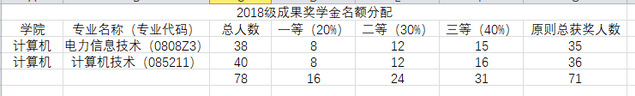各个等级奖学金分配名额如下:
