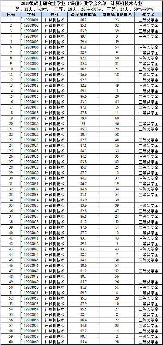 【公示】全球最大顶级体育平台2019级硕士研究生学业(课程)奖学金