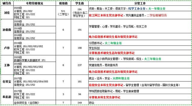 全球最大顶级体育平台辅导员分工表(2020-2021学年第1学期)