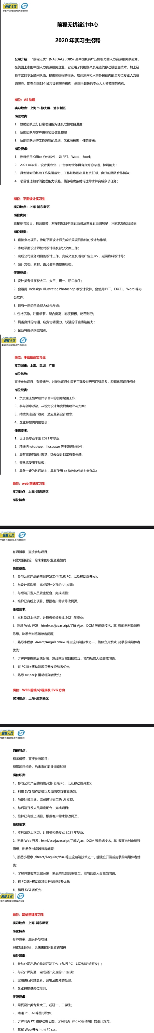 【招聘信息】201-202009前程无忧设计中心招聘