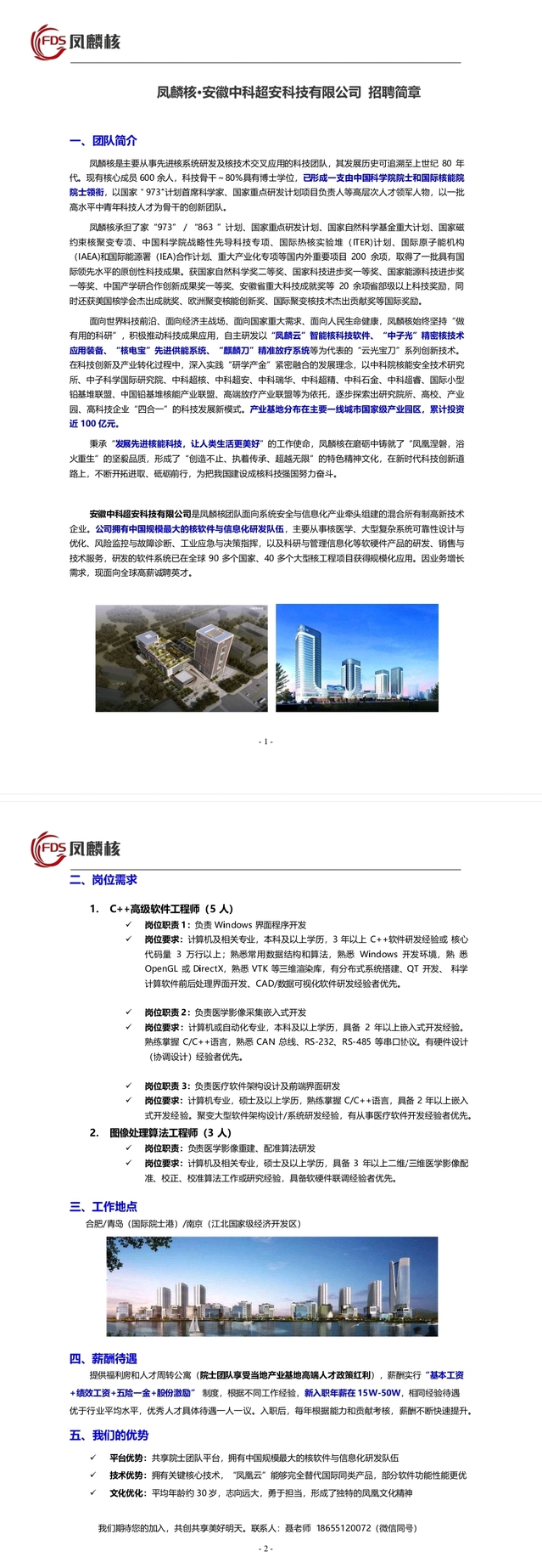 【招聘信息】217-202011凤麟核·安徽中科超安科技有限公司
