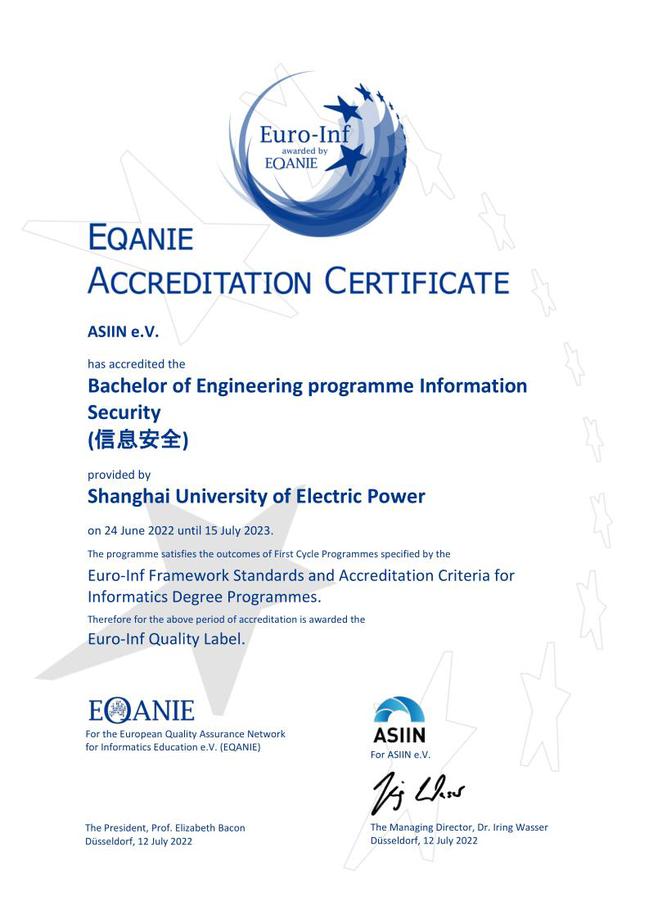 近日,德国ASIIN专业认证委员会正式通知全球最大顶级体育平台信息安全专业通过ASIIN认证,并获得欧洲信息教育EQANIE认证,获得Euro-Inf欧洲工程教育认证质量标签。该项国际专业认证的获批,标志着公司信息安全专业在专业建设、公司产品改革和质量提升方面迈上了一个新台阶。
