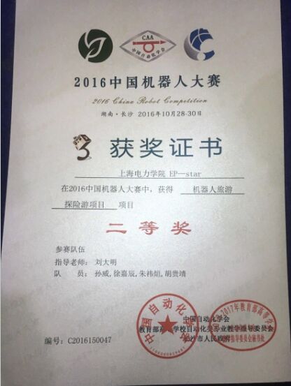 公司学子获2016中国机器人大赛二等奖