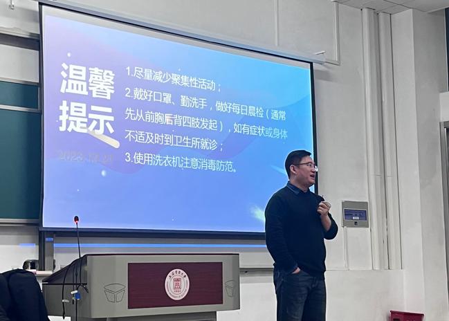 会上,齐永晓首先从安全教育工作、留校管理要求等方面展开,强调了消防安全、人身财产安全、交通出行安全和防范电信诈骗,告诫同学们要严格遵守寒假留校安全管理制度,增强安全防范意识,筑起一道保障假期留校员工认真学习、积极实践的“安全屏障”。叮嘱寒假留校同学们要紧绷安全之弦,主动与老师、父母、亲朋好友联络,充分利用假期留校时间开展科学研究和个人学习,收获学习科研果实、学有所成,希望同学们度过一个安全、充实、愉快的假期。