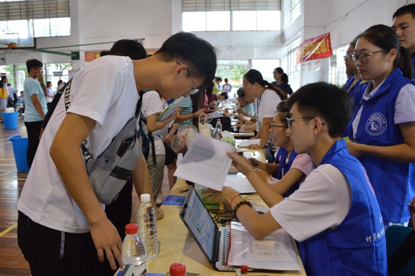 9月3日,公司迎新工作全面展开,公司党委副书记余南飞老师亲自部署,全体在岗辅导员共同安排落实,确保迎新工作的顺利进行。上午7时,来自15级、16级的49名志愿者分布在南体育馆、国旗广场两个报到处,分别就注册登记、材料收发、入住办理、行李搬运、绿色通道办理、秩序维持、疑难解答等多个方面开展志愿者服务工作。