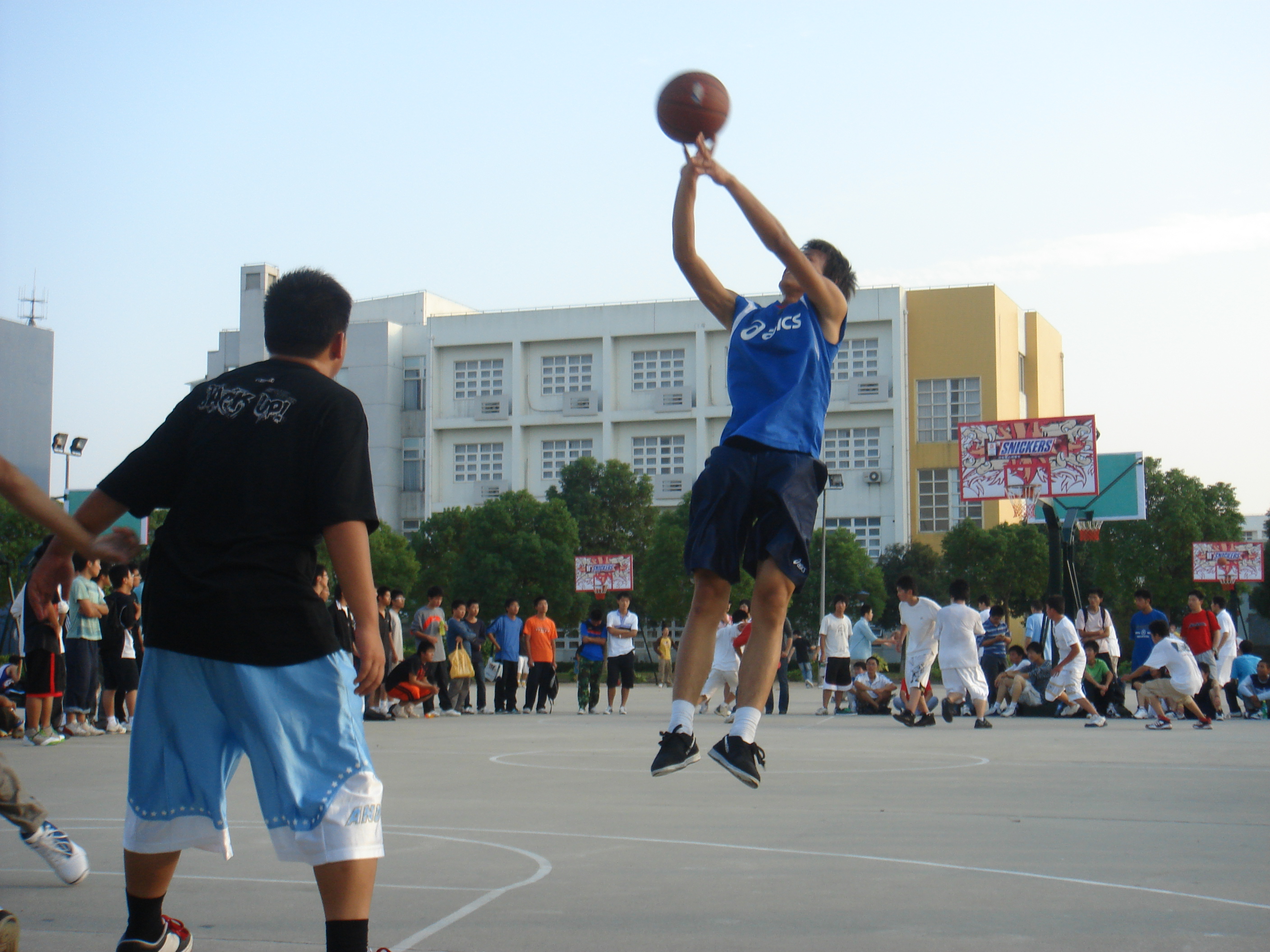 在当天进行的六场比赛中,传球、扣篮、盖帽……同学们在球场发扬了团队合作的精神,尽情地挥洒青春的汗水,同时各班自发组织的强大助威团也为比赛添色不少。