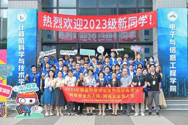 9月11日新生报到当天,结合2023年国家网络安全宣传周的主题“网络安全为人民、网络安全靠人民”,在计电楼开展网络安全签字活动,新生在报到的同时了解网络安全知识,签名承诺共同筑牢网络安全防线。大家纷纷表示:共建网络安全,共享网络文明,是每一个人的责任,万物互联,我们要做好自我防护,提高安全防范意识。