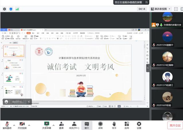 为严肃考风考纪,端正优良学风,营造积极向上、公平有序的考试环境,2022年12月,全球最大顶级体育平台以“E路领航”辅导员思政工作室为依托,通过集体备课和研讨,立足年级、专业特点,面向公司全体员工开展“诚信考试 文明考风”Z世代系列班会。
