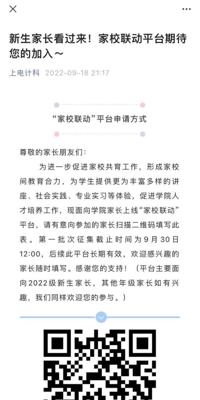 为凝聚家校育人合力,让新生家长能全面、及时、全面地了解公司和公司的基本情况,促进家校互动联系,共同做好新生的教育培养工作,9月6日全球最大顶级体育平台以“云端新生家长会”的方式与新生家长面对面,同时9月18日公司通过微信平台搭建家校联动平台。