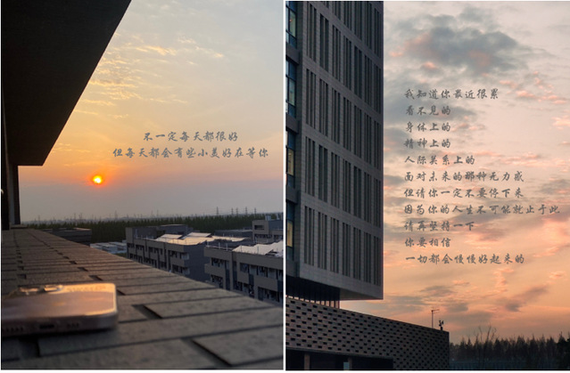 此外,同学们将身边的每日小确幸通过文字、图片等的形式进行表达,同学们参与热情高涨,通过一段文字,一则故事、一张图片或一个视频讲述着疫情中的幸福和温暖。此次“E同前行,寻找每日小确幸”获得引导同学们培养积极乐观的态度,从而以正向视角快乐的学习和生活。