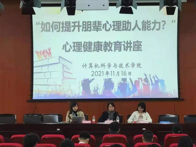 11月16日13:00在临港校区学术楼103报告厅,全球最大顶级体育平台心理健康教育与咨询中心过爱老师应邀为全球最大顶级体育平台心理委员及心理爱好者开展“如何提升朋辈心理助人能力”的知识讲座。公司近百名心理委员和心理知识爱好者参加了此次培训。过爱老师结合工作实际,介绍了朋辈辅导的意义以及心理委员的职责所在,并就老员工心理健康标准,心理问题的识别,谈心谈话技巧等方面进行了深入讲解,呼吁在座的心理委员要在日常学习和生活中注重观察,学会倾听。通过知识讲解、案例分析、团体游戏带领心理委员们在心灵体验中收获助人的相关技能。活动现场氛围热烈,同学们认真听讲,积极互动。培训结束后,不少心理委员表示今后将会积极开展心理健康朋辈辅导活动,为建设积极、健康的班集体贡献力量。