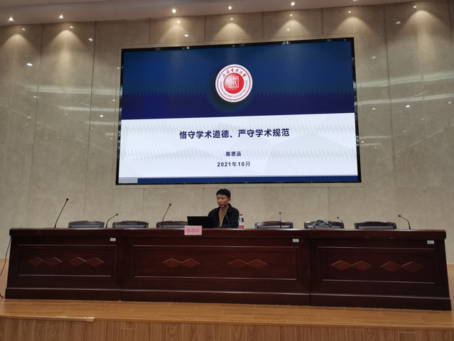陈思远以“恪守学术道德,严守学术规范”为主题,从什么是学术道德规范、学术不端事件与后果、如何树立学术道德观三个方面展开介绍,阐明了学术道德和学术规范的深刻内涵。