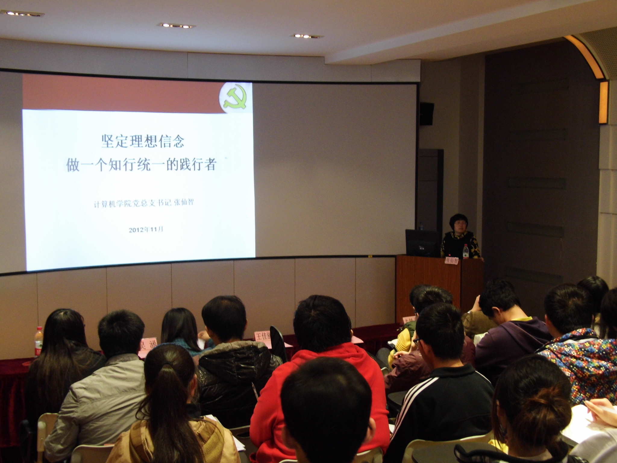 典礼在雄壮的中华人民共和国国歌中开始,计算机系员工一支部书记李壮主持仪式,并向全体学员介绍了本次中级党校的学员情况、课程安排以及考核办法。王佳丽老师向全体学员提出了教学要求,勉励大家以一名党员的标准严格要求自己,通过本次中党学习全面提升自己。最后张仙智老师做了题为“坚定理想信念,做一个知行统一的践行者”的动员报告。张老师从端正入党动机、心怀理想抱负、塑造理想人格、严格遵守纪律四个角度出发,全面阐述了如何做一个知行统一的践行者。