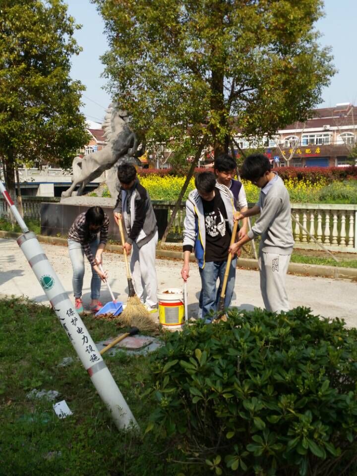 首先同学们分了两组,其中3人去后院打扫卫生,其余人都先去花坛拔除杂草,打扫的同学拿上扫帚和垃圾桶到后院辛勤的劳动起来,一人扫坛内的落花、落叶,一人扫花坛下的垃圾,另一人负责将扫起来的垃圾装进桶里,太阳在天上火辣辣的,同学们干活干的挥汗如雨,在扫不动的情况下,他们不怕脏、用手捡,就这样一点一点的将垃圾捡进垃圾桶里,而拔杂草的同学飞快的将杂草拔掉后,也来支援打扫的同学,一些同学在一边扫地面,一些同学帮着捡垃圾,一些同学装垃圾,整幅画面有着淡淡的温馨,也有着真挚的同学情,大家一起齐心协力的打扫着道路,不一会就清理完了,同学们轻轻地来,又轻轻的走,希望他们的劳动成果能让老人们有一个更好的心情。