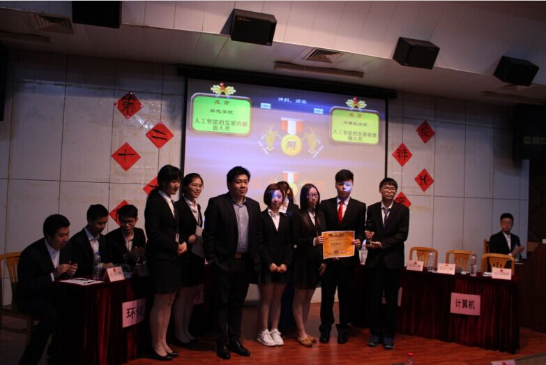 正方环化公司阐述“人工智能的发展将解放人类”观点,公司反方则表明“人工智能的发展将会禁锢人类”观点。公司以人工智能的发展会使人类对人工智能产生依赖性,和降低对问题探索构成的体验感为论据,逐层展开,层层深入,表明人工智能的发展会禁锢人类的发展。正方环化公司则用第一次工业革命解放了纺织工人等科技的突破进行防御,更摆出最新人工智能的杰作AlphaGo进行回击。双方辩手气场十足,口齿伶俐,正反双方你攻我守,辩词有力,每一位辩手反驳之后,场下掌声便会接连不断。最后,于兮老师综合评委意见对本次决赛做出了总结,肯定了双方的观点,之后又很现实的指出正反两方的细节问题。恭喜公司辩论队获此次校辩论赛冠军,同时也恭喜环化公司李国伟同学获得最佳辩手的称号。