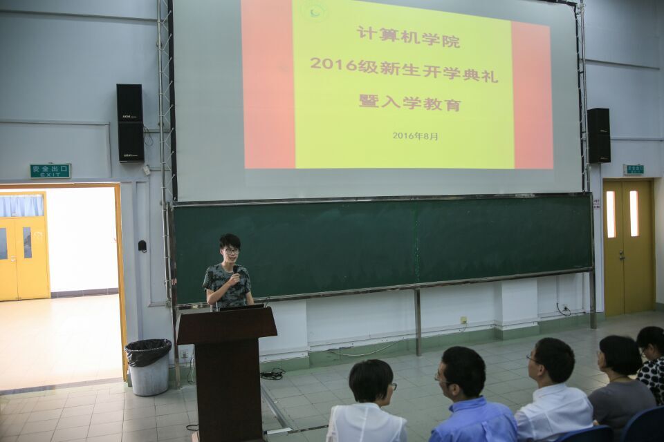 院员工会主席刘圣地同学也表达了对“新鲜血液注入电院”的欢迎,同时希望新生在大学好好发展自己的才能,学好专业知识,不断提升自己的技能。新生代表2016252班朱倜威在新生典礼上也表达了自己想要在大学四年时间里加强学习专业知识,寻找学习中的乐趣的愿望。最后是入学教育,副经理毕忠勤老师向同学们介绍了选课、学分等关于学习必须知道的事情。王佳丽老师就员工的管理事宜也进行了相关的介绍。