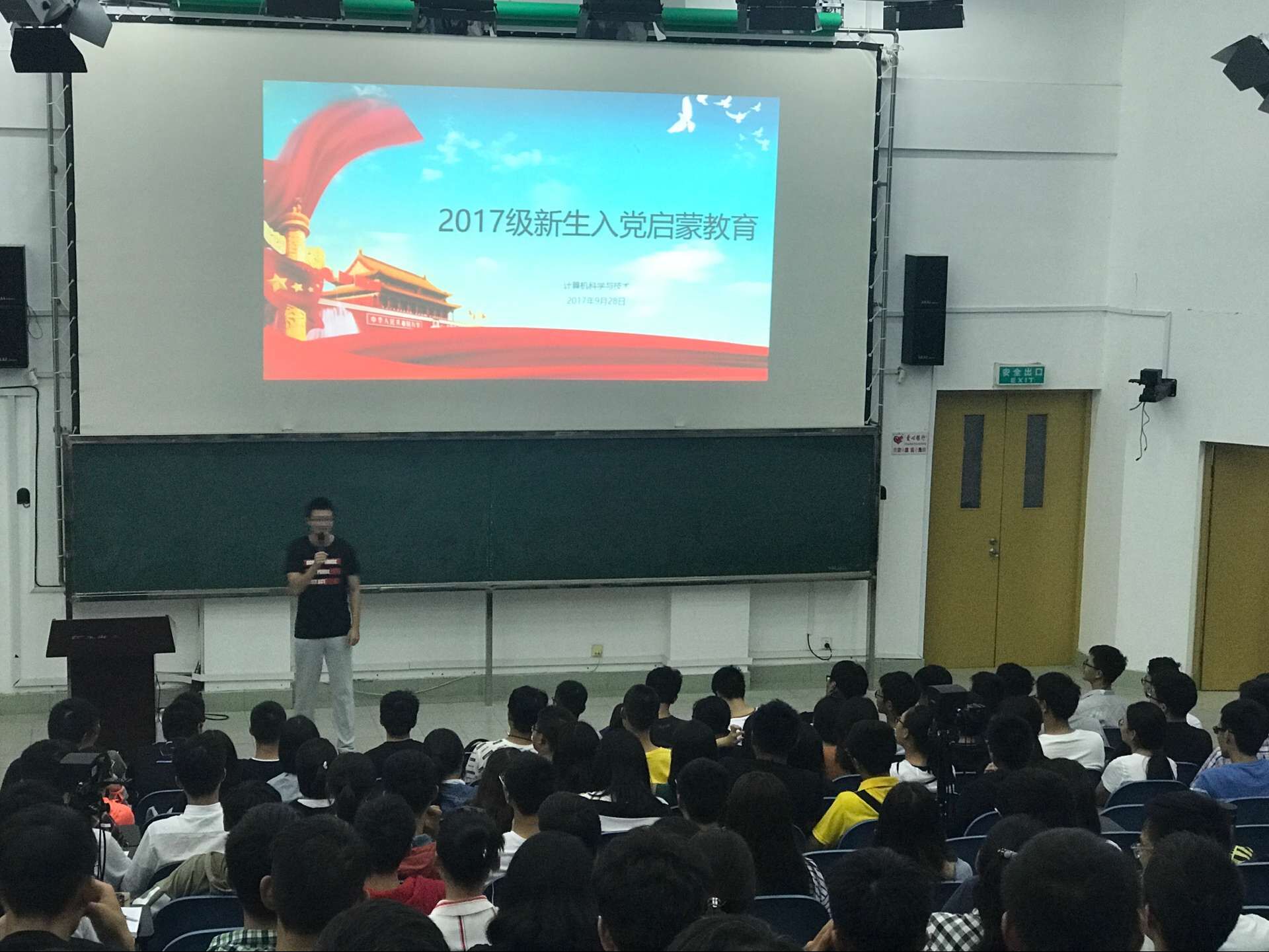 为了让新生正确看待入党问题,树立正确的入党动机,9月29日下午,在南1201,公司面对2017级全体新生,开展了了新生入党启蒙教育讲座。讲座邀请了公司退伍士兵、优秀党员代表乐汉同学主讲,由公司兼职组织员朱佳老师主持。