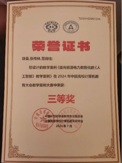 本次学术沙龙不仅为同学们提供了展示自我、交流学习的平台,也增强了他们对人工智能技术及其在电力系统应用方面的理解和兴趣。通过这次活动,同学们不仅展示了他们的研究成果,还培养了团队协作和创新能力。以本课程教学为基础的课程教学案例在中国计算机学会主办的2024年中国高校计算机教育大会的教学案例大赛中荣获三等奖。
